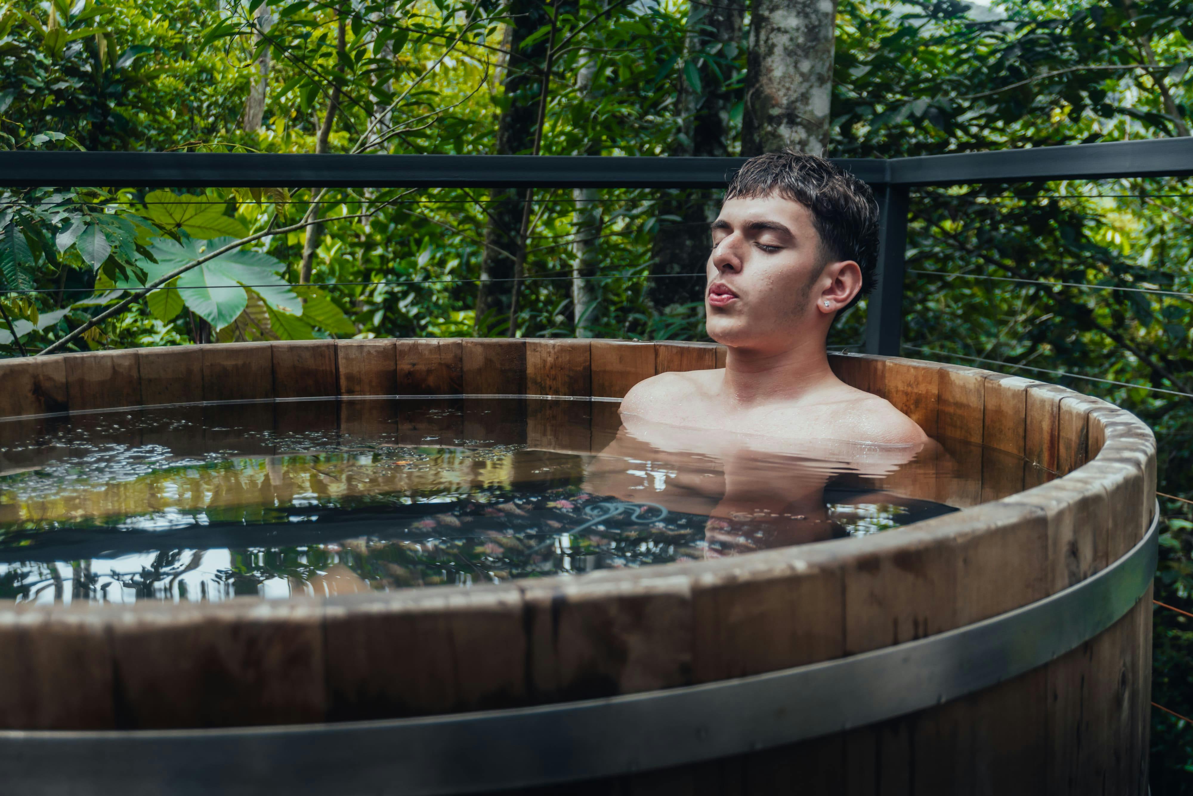 For a moment of absolute relaxation, you can enjoy an ofuro with hot water, set to the perfect temperature for your comfort. A suspended internal mesh invites you to contemplate the landscape, read a book, or simply relax.